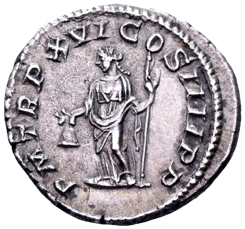 Rome, 213 AD. AR denarius, 3.23 gr., 18.8 mm.